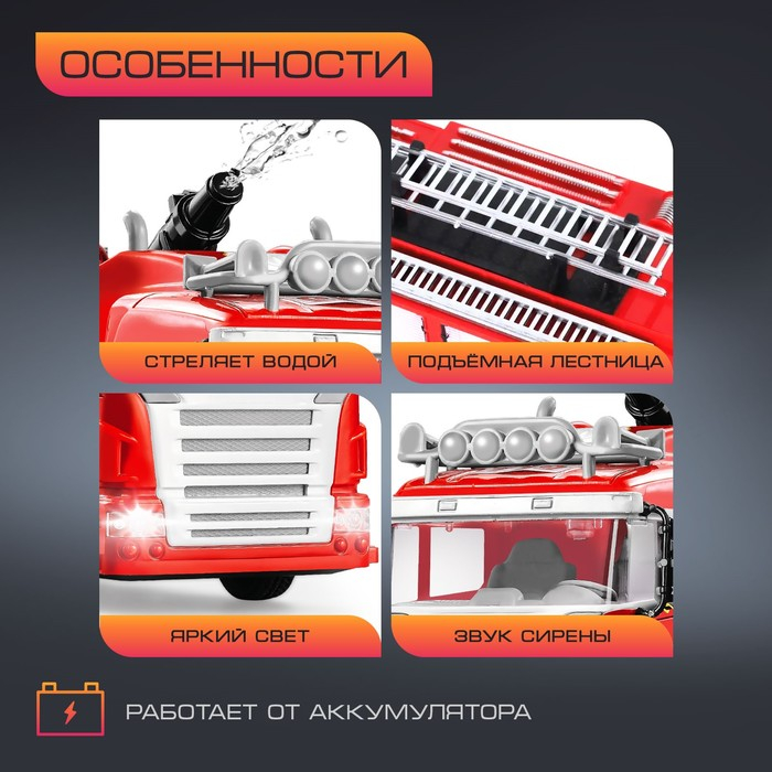 Машина радиоуправляемая «Пожарная охрана», стреляет водой, световые эффекты, работает от аккумулятора