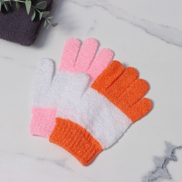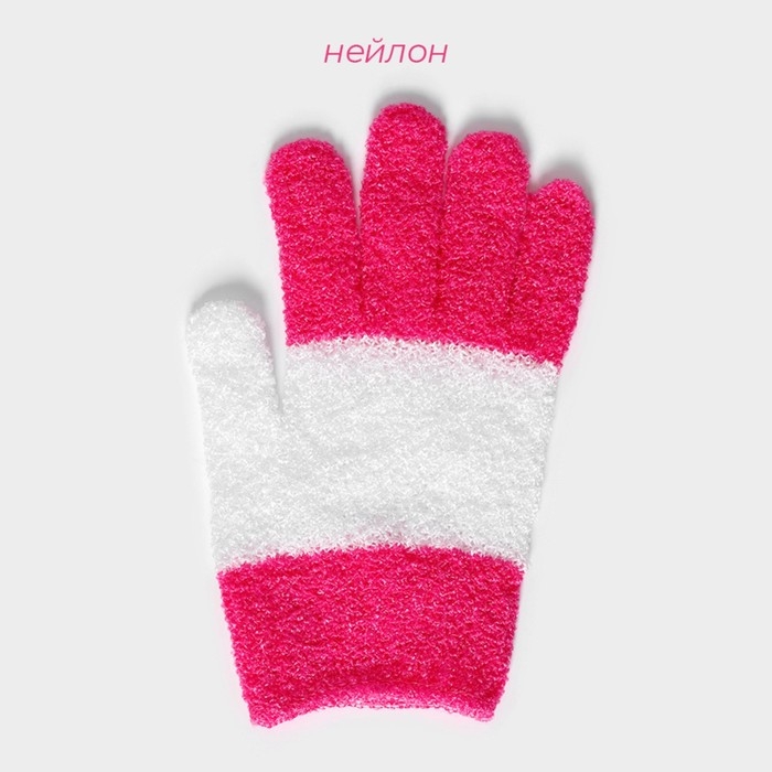 Мочалка-перчатка массажная Доляна, 14×18 см, полосатая, цвет МИКС