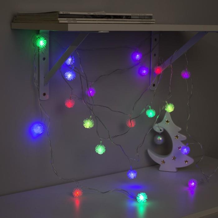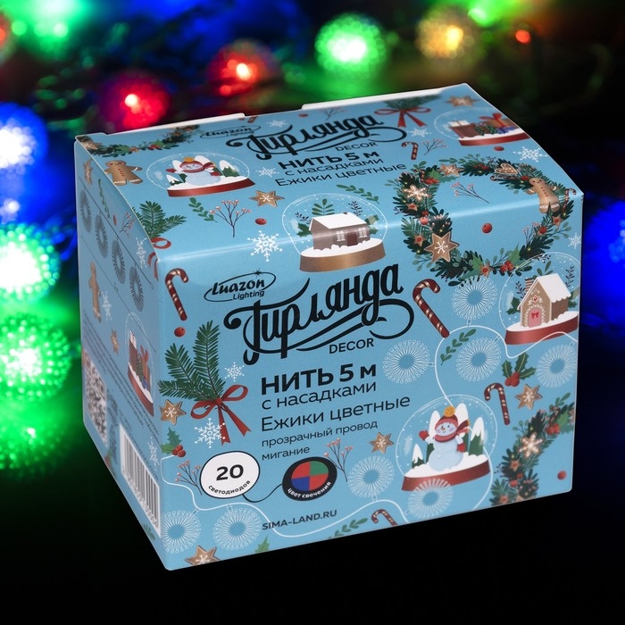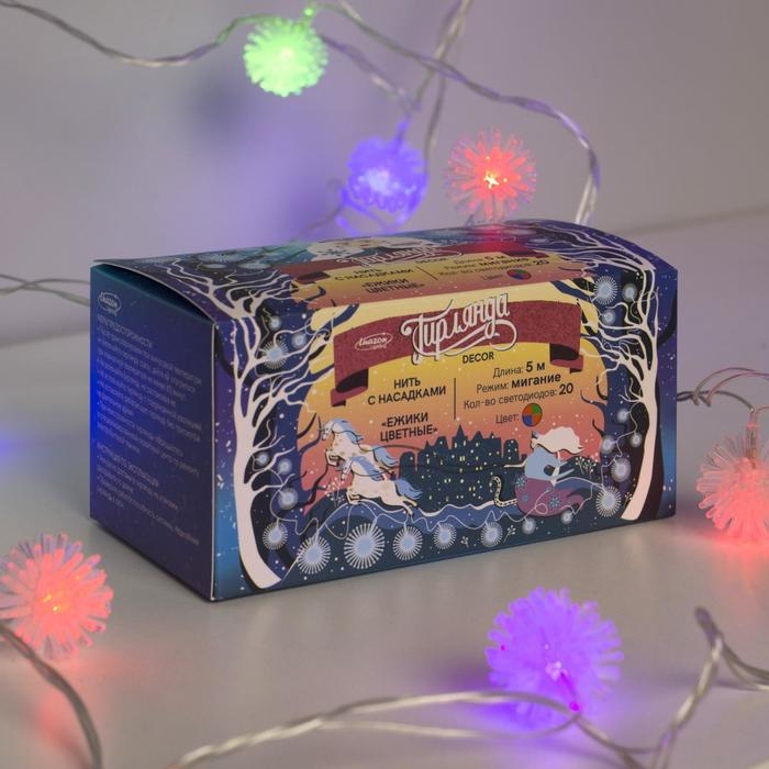 Гирлянда «Нить» 5 м с насадками «Ёжики цветные», IP20, прозрачная нить, 20 LED, свечение мульти (RG/RB), мигание, 220 В