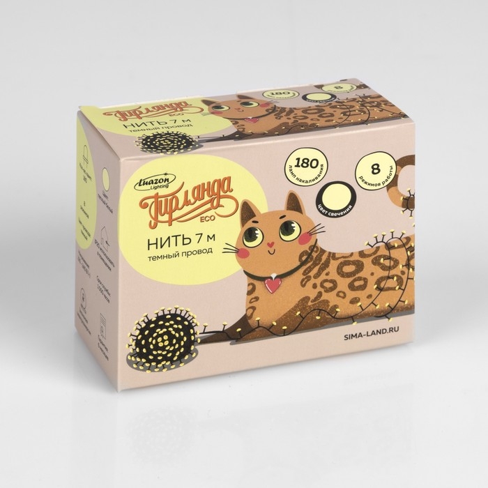 Гирлянда «Нить» 7 м, IP20, тёмная нить, 180 ламп, свечение тёплое белое, 8 режимов, 220 В