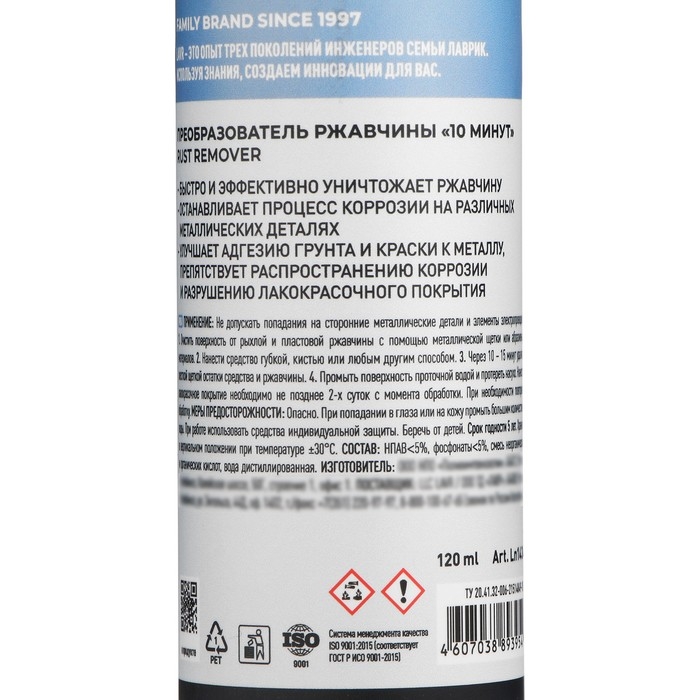 Очиститель от ржавчины LAVR 120мл - быстро и эффективно уничтожает ржавчину. Улучшает адгезию грунта и краски к металлу, препятствует распространению коррозии. Очиститель проникает в труднодоступные места. Ослабляет заржавевшие болты, винты и гайки. Не содержит агрессивных кислот.