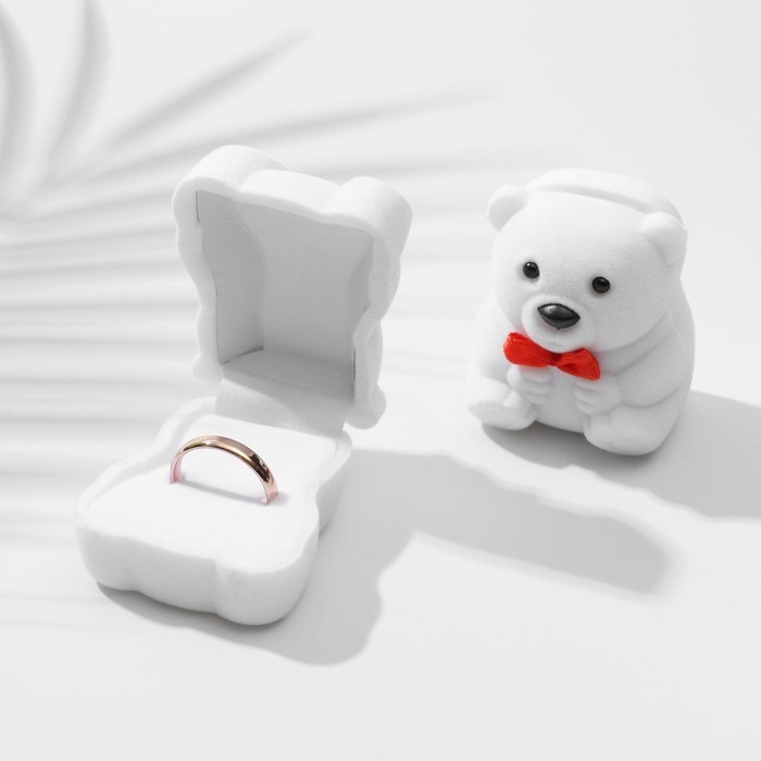 Футляр бархатный под кольцо «Мишка» 4,5×5×3,5, цвет белый