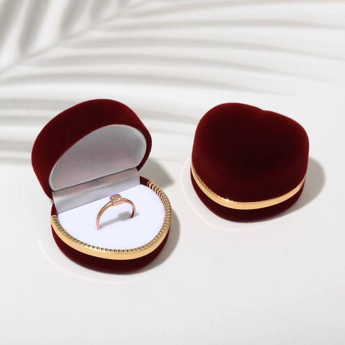Футляр бархатный под кольцо «Сердце» 4×5, цвет бордовый с золотом