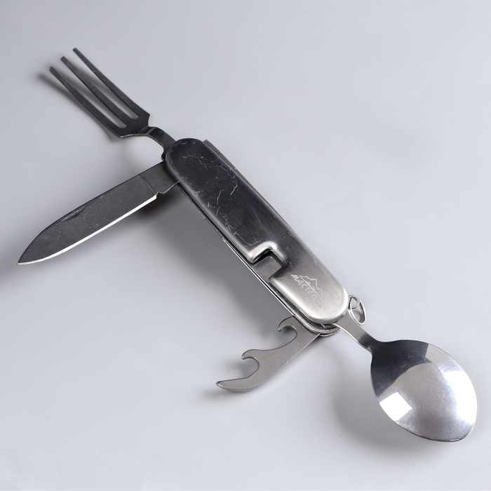 Набор туриста "Путешественник" 4в1: серебристый неотъемлемая часть любого пикника. Универсальный нож позволит нам с легкостью нарезать фрукты и овощи, открыть банку, бутылочку вина или лимонада, съесть шашлык или любимый десерт. Компактный нож сэкономит в рюкзаке место для более крупных вещей при этом останется востребованным на протяжении всего времени.