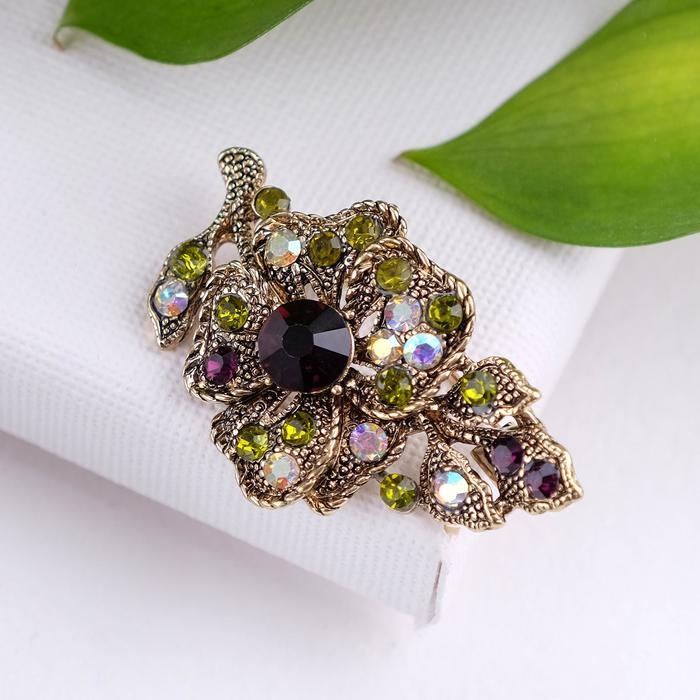 Брошь «Цветочная лоза», цвет изумрудный в чернёном золоте