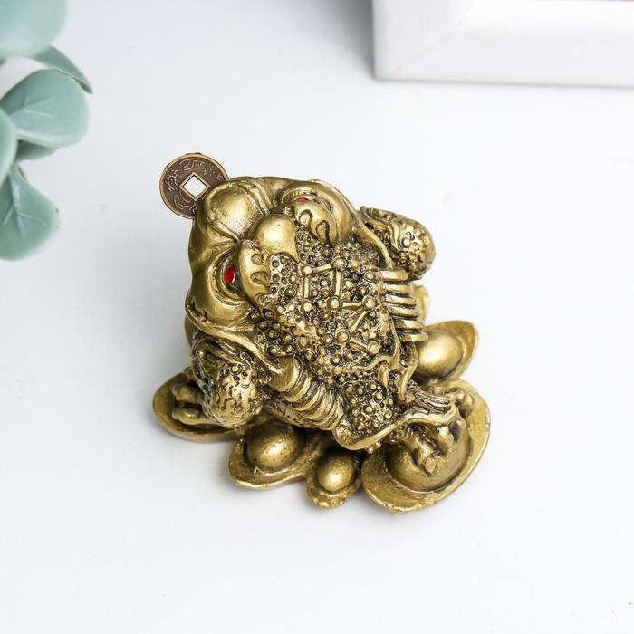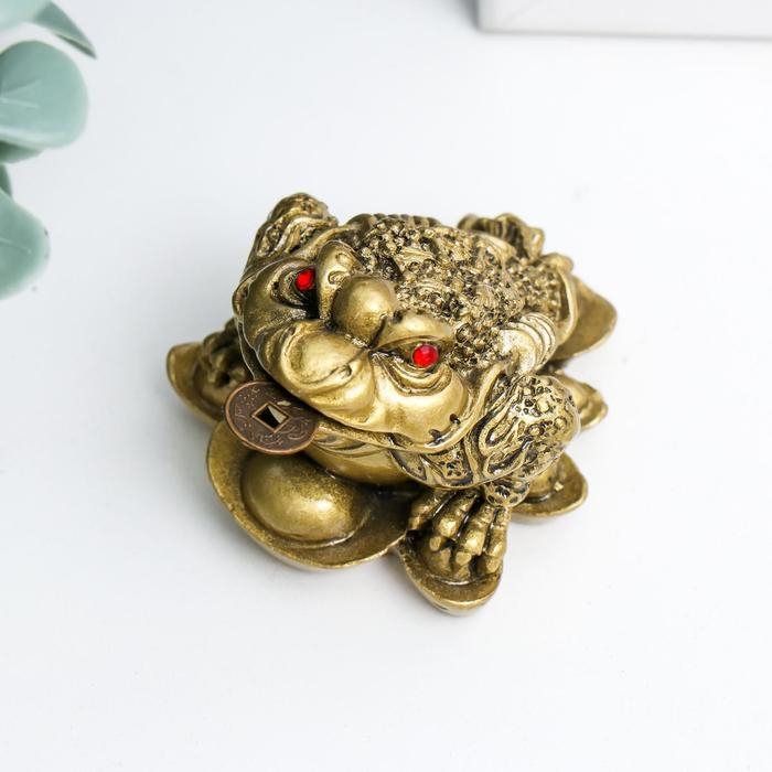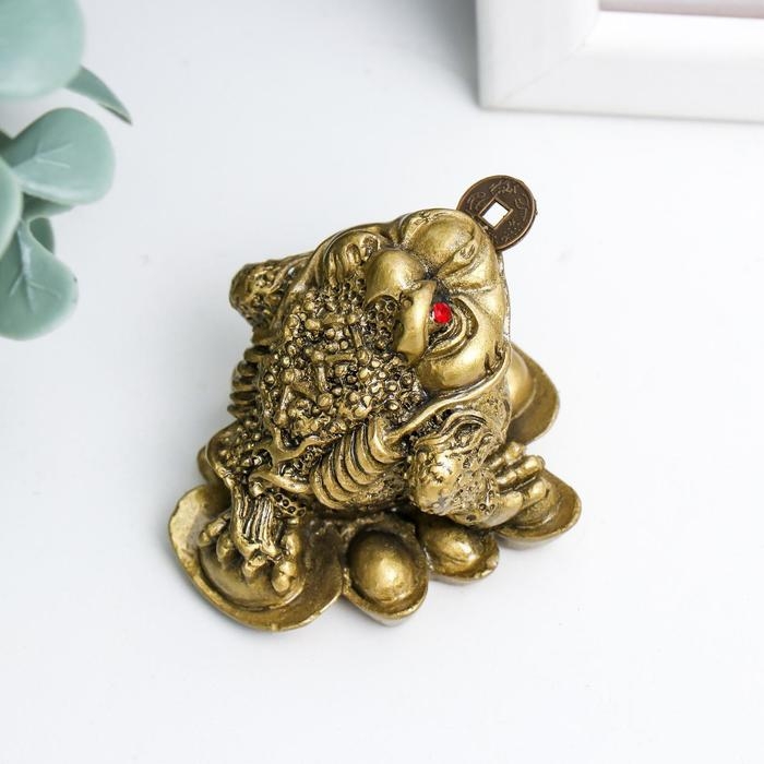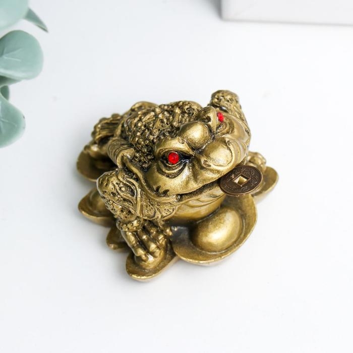 Нэцке полистоун бронза "Жаба на слитках" 4х3,5х3,5 см