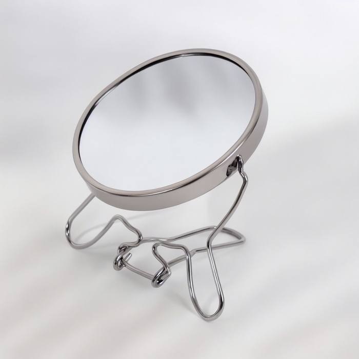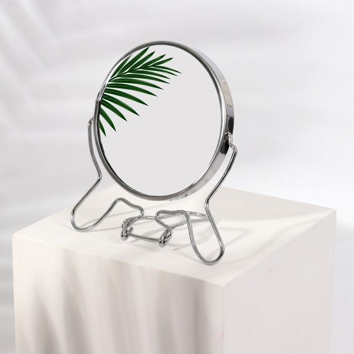 Зеркало настольное - подвесное «Круг», двустороннее, с увеличением, d зеркальной поверхности 9 см, цвет серебристый