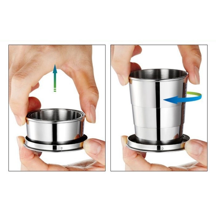 Стакан складной многоразовый объемом 70 мл, изготовлен из высокого качества 304 нержавеющей стали. Универсальный вариант для туристических походов, путешествий, рыбалки, охоты или выездов на природу. Он не только красиво смотрится, но и обеспечивает долгий срок службы изделия. Легко моется и подходит для повседневного использования. Отлично заменит стеклянные рюмки и бокалы, смотрится эффектно и стильно. Стакан, удобно помещается в руке и имеет оптимальный и вместительный объем 70 мл. Складной стакан удобно брать с собой в сложенном виде, он занимает мало места и его можно положить в карман или рюкзак, а это очень важно в походах.