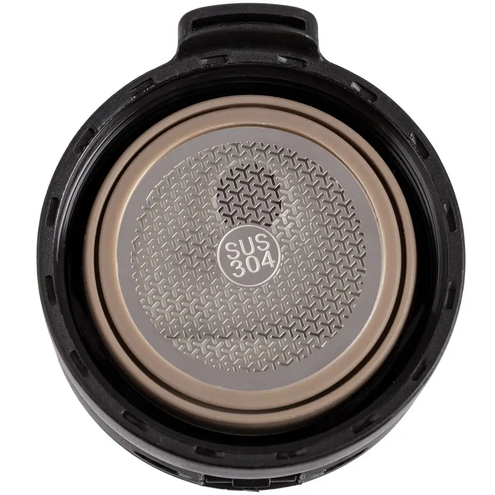 Двухслойная вакуумная конструкция из нержавеющей стали внутри и снаружи. Герметичная откидная крышка-клапан с ситечком.