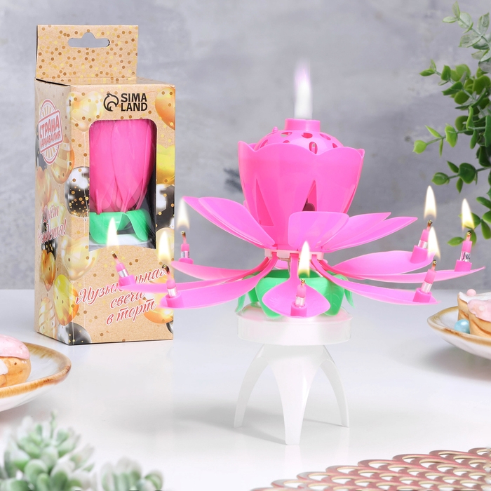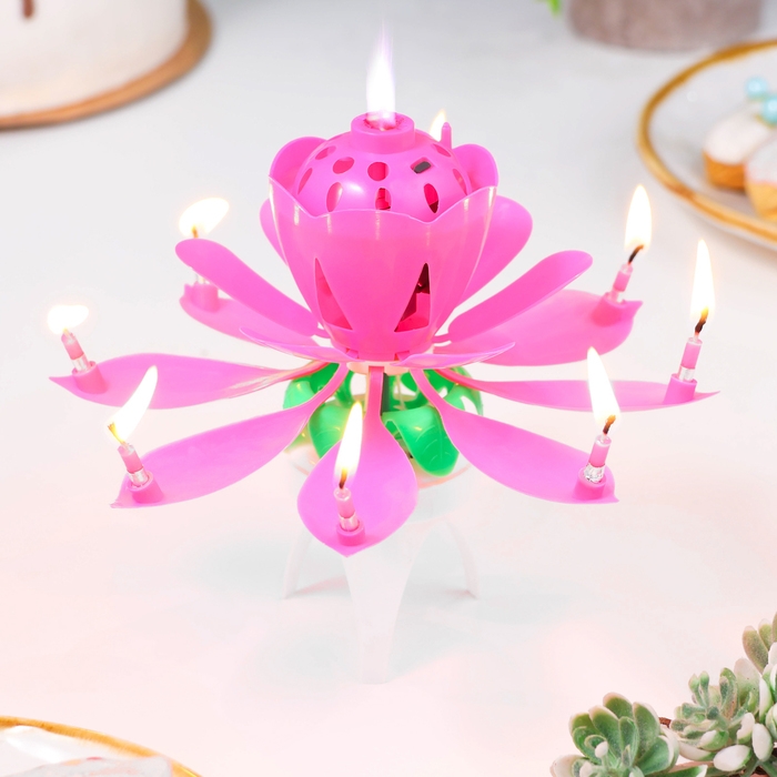 Свеча для торта музыкальная "Бутон", крутящаяся, розовая, 14,5 см