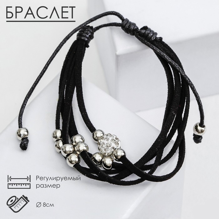 Браслет кожа «Шамбала» 5 нитей, замша, цвет чёрный, d=8 см