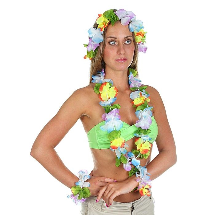 В любом образе важны детали. Гавайский набор внесёт необходимую южную нотку в ваш наряд. Этот красочный набор в одной цветовой гамме идеально подойдёт для гавайской вечеринки.