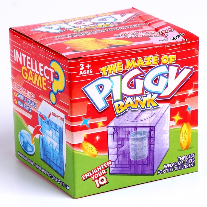 Главная задача — перекатывать шарик и найти выход из лабиринта. Внутрь кубика встроена копилка — можно смело отправлять туда монеты. Получить их обратно будет не так просто. Чтобы копилка открылась, нужно загнать шарик в определённое место. Такое развлечение займёт малыша на долгое время!