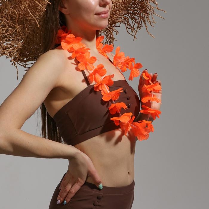 Гавайское ожерелье "Цветочки", цвет оранжевый