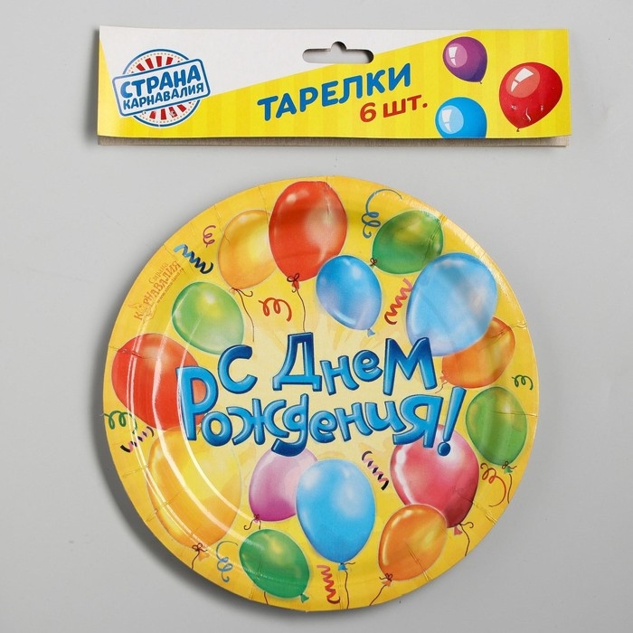Тарелка одноразовая бумажная "С днем рождения" воздушные шары (набор 6 шт)