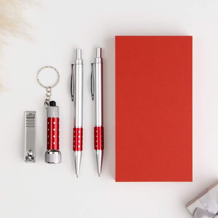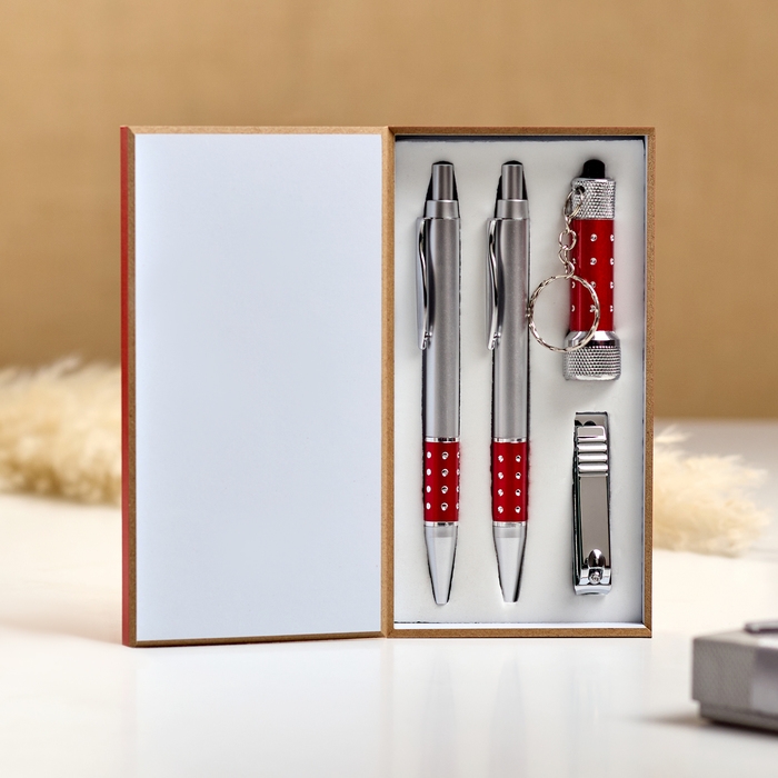 Набор подарочный 4в1 (2 ручки, кусачки, фонарик красный) микс