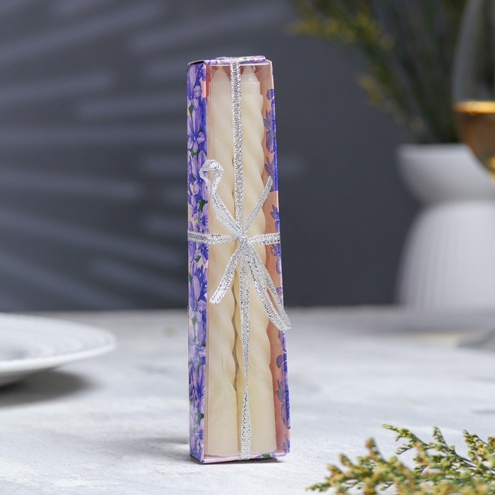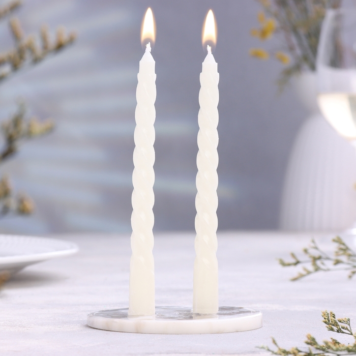 Набор свечей витых, 2,3х 24,5 см, 5 ч, 50 г, 2 штуки, белый