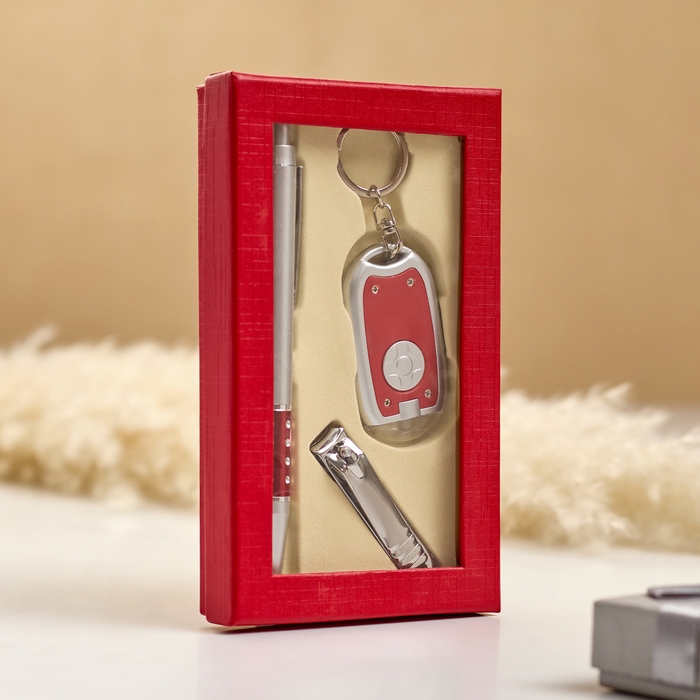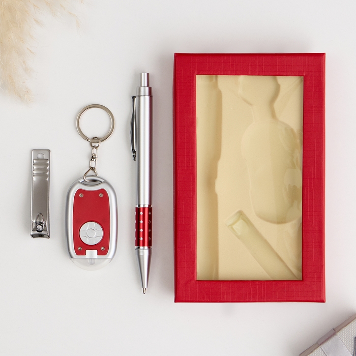 Набор подарочный 3в1 (ручка, кусачки, фонарик красный)