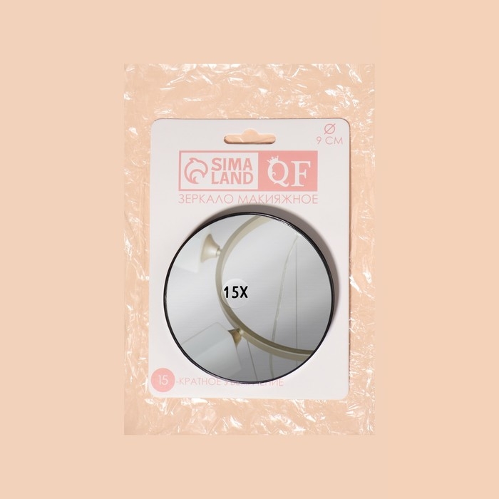 Зеркало макияжное, увеличение × 15, на присосках, d = 9 см, цвет чёрный