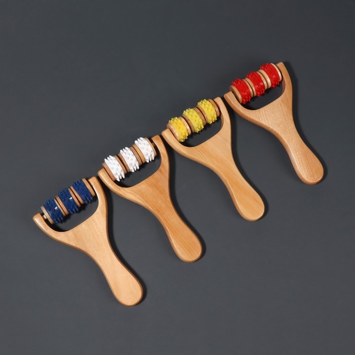Массажёр «Барабаны», 4 ролика с шипами, деревянный, 26 × 10 × 5 см
