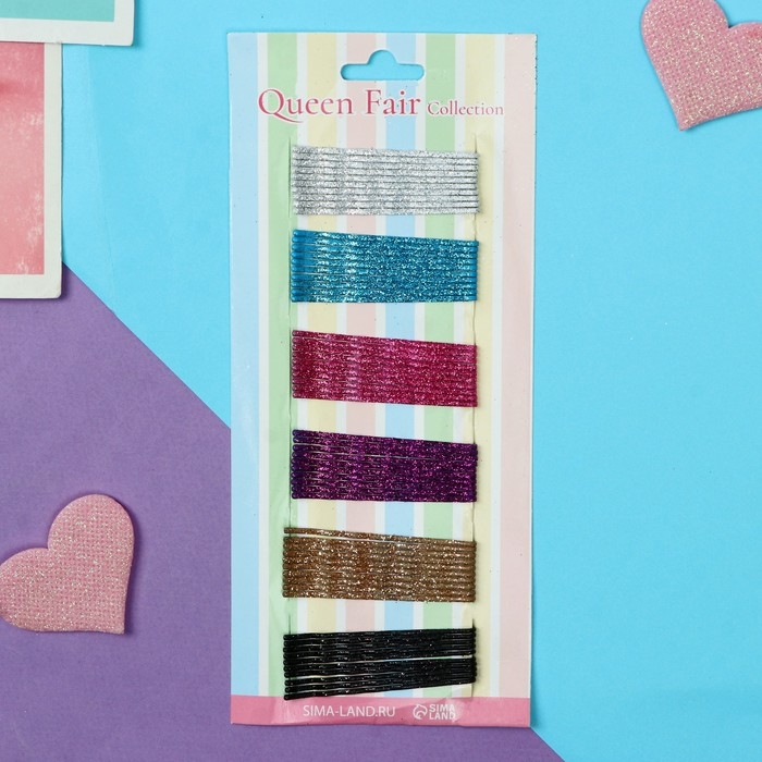 Невидимка для волос «Валери», набор 60 шт., 4.5 см, серебро