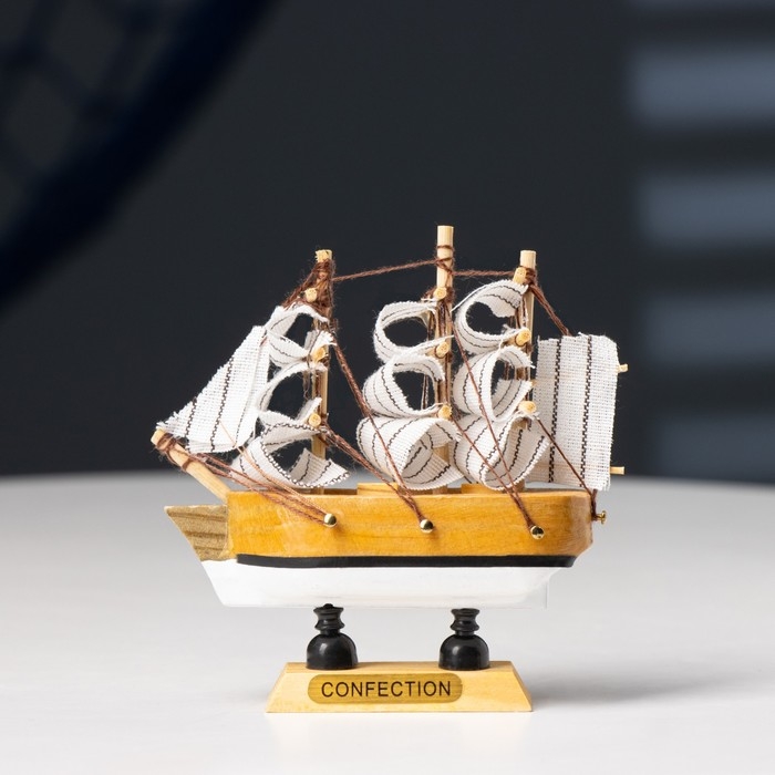 Корабль сувенирный средний «Фугас», борта тёмные с белой полосой, 45х50х9 см, микс