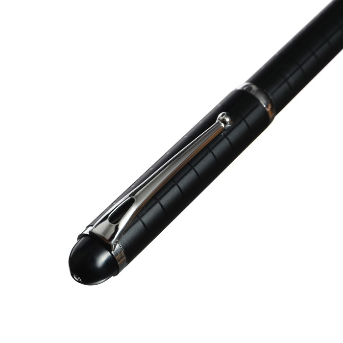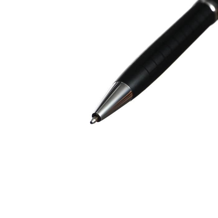 Ручка шариковая, подарочная, в пластиковом футляре, поворотная, "Бизнес", чёрная с серебристыми вставками