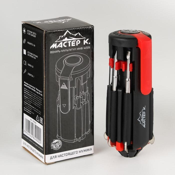 Фонарь многофункциональный, мультитул 8 в 1 "Мастер К", 8 в 1, 6 LED, 3 Вт, 12 х 4 см, 3 ААА