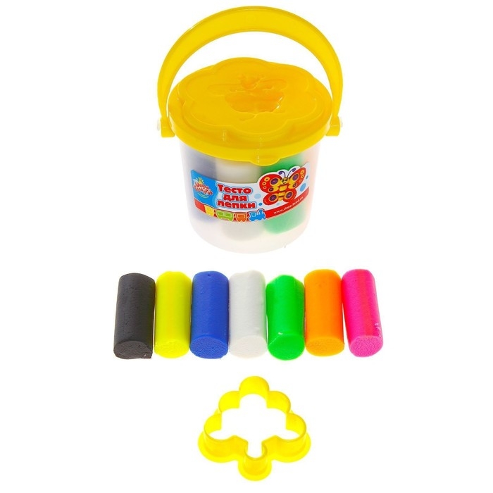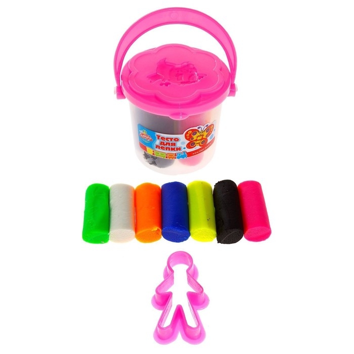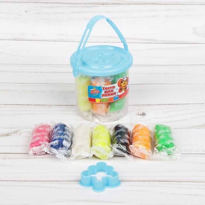 Тесто для лепки 7 цветов, 105 г + 1 формочка + крышка-формочка, МИКС