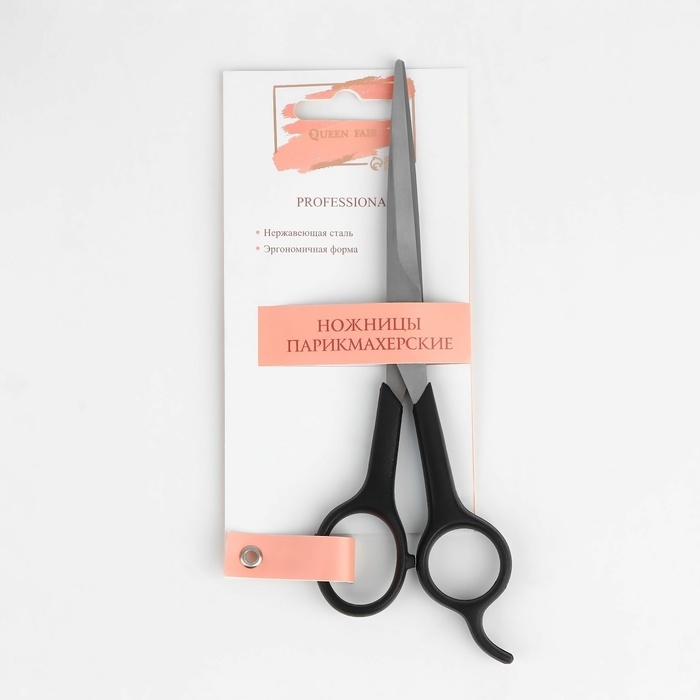 Ножницы парикмахерские с упором, лезвие — 7 см, цвет чёрный