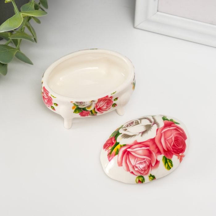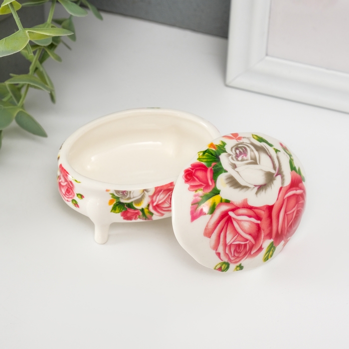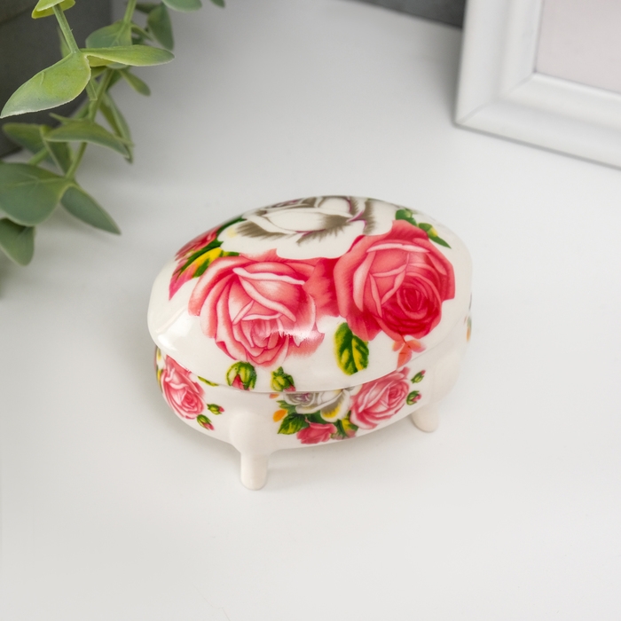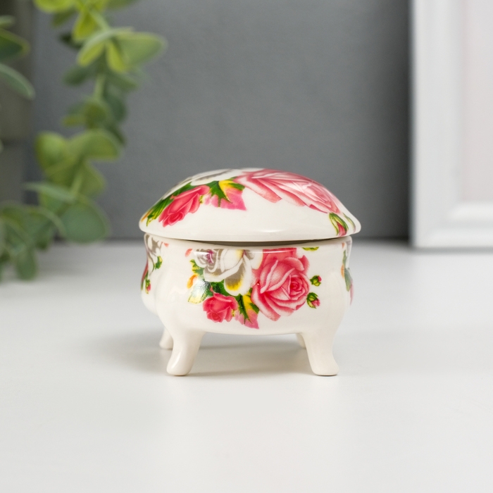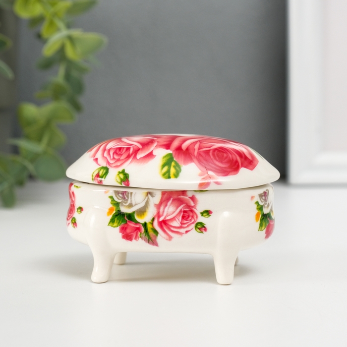 Шкатулка керамика на ножках "Бархатные розы" 6,1х7,7х4,8 см