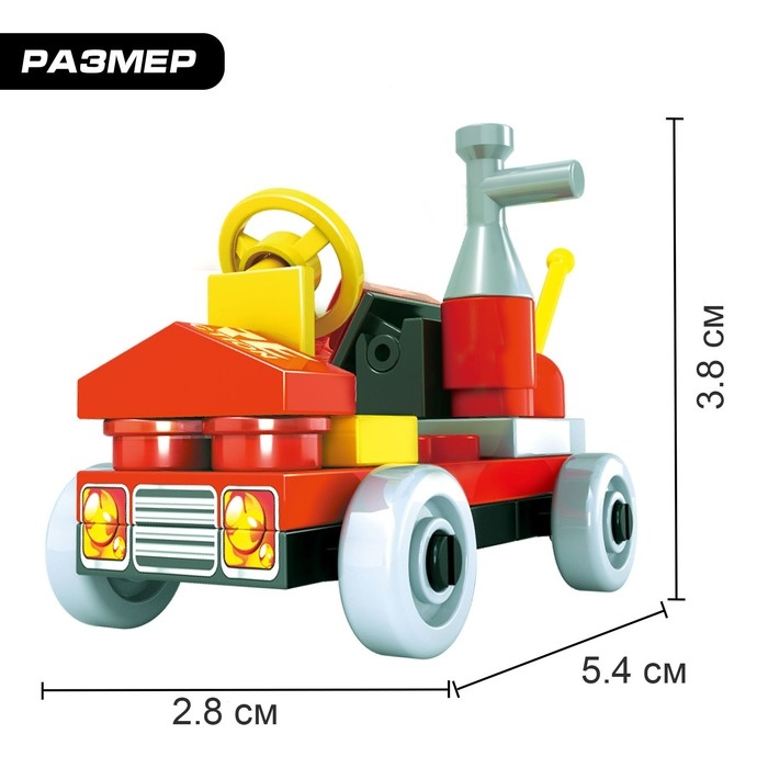 С набором торговой марки Ausini малыш без труда сконструирует пожарный автомобиль и вступит в команду огенеборцев. На манёвренной спецтехнике юный спасатель в любую секунду отправится на срочный вызов и устранит возгорания — город будет спасён!