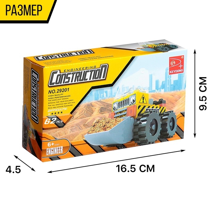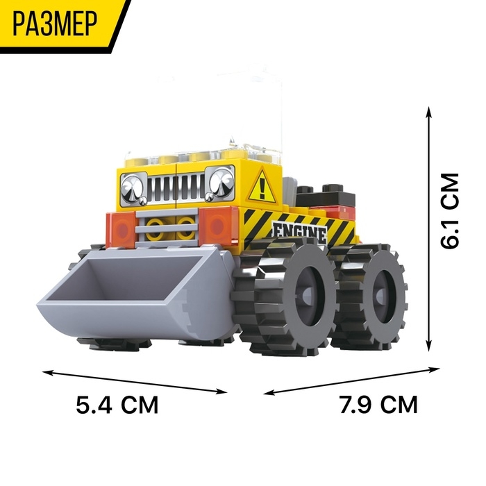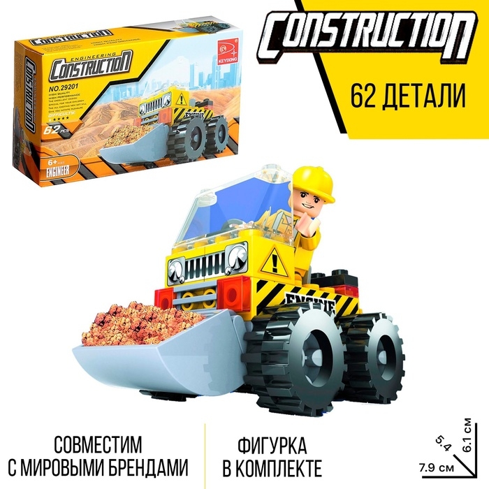 - Набор содержит 60 деталей и позволяет сконструировать погрузчик и фигурку строителя.