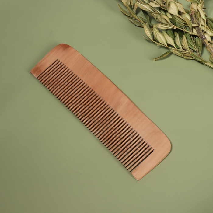 Деревянная расчёска — безопасный и экологичный инструмент для ежедневного ухода за волосами. Зубчики не травмируют кожу головы, не электризуют волосы и препятствуют их рассечению. Поэтому гребень с частыми зубцами подойдёт для расчёсывания тонких, окрашенных и повреждённых прядей. Компактный размер позволит носить такую расчёску с собой, чтобы причёска всегда выглядела ухоженной.