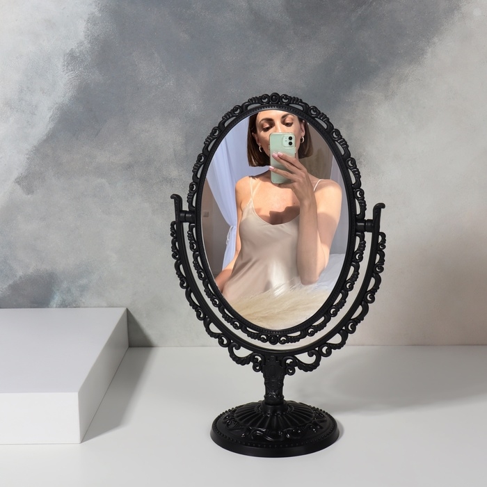 Зеркало настольное, двустороннее, с увеличением, зеркальная поверхность 11 × 15 см, цвет чёрный