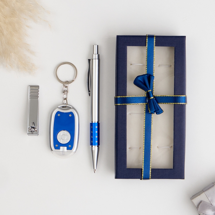 Набор подарочный 3в1 (ручка, кусачки, фонарик синий) микс