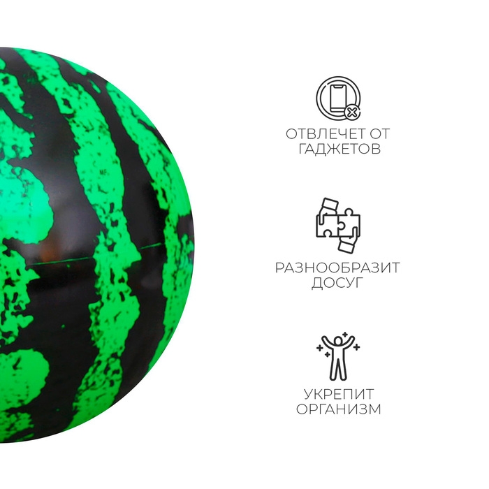 Яркий мяч в виде арбуза обязательно привлечёт внимание и не залежится на полке. Играя с ним, вы проведёте время с пользой для здоровья и поднимите настроение.