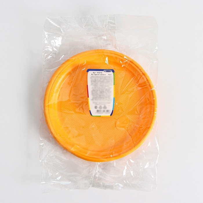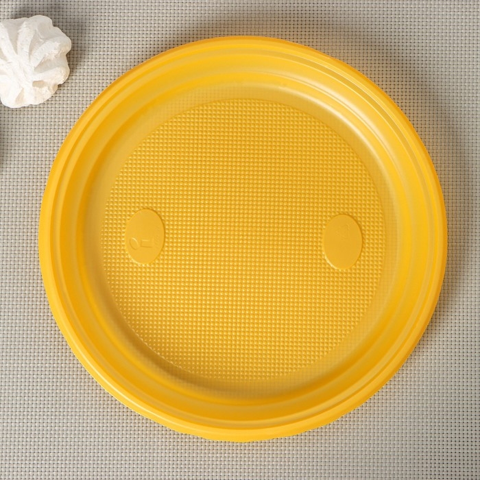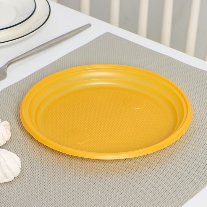 Тарелки пластиковые одноразовые, d= 21 см, цвет жёлтый, 12 шт/уп