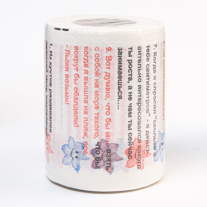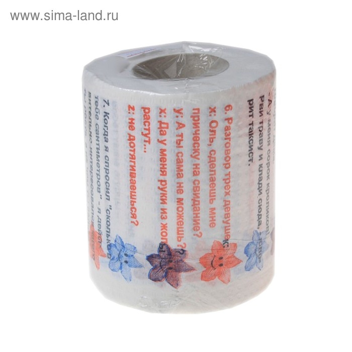 Качественная двухслойная туалетная бумага с весёлыми картинками и анекдотамина вечные темы не даст вам скучать нигде! Рулон имеет стандартный размер, упакован в термоплёнку