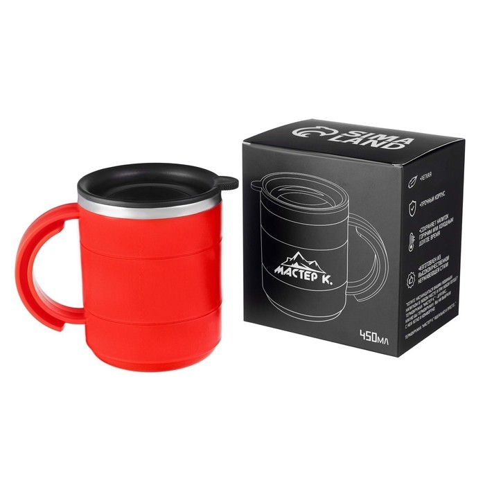 Термокружка «Мастер К», 450 мл, с ручкой, сохраняет тепло 2 ч, 12.5×10.5 см, красная