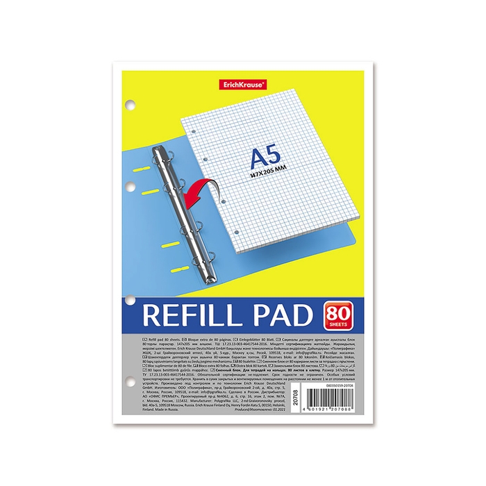 Сменный блок для тетради А4, на кольцах, 80 листов в клетку, Erich Krause