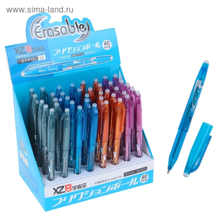 Ручка шариковая со стираемыми чернилами, линия 0,5 мм, стержень синий, корпус МИКС (штрихкод на штуке)