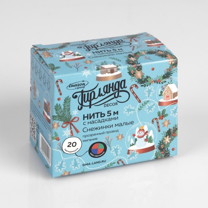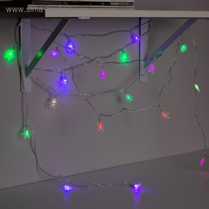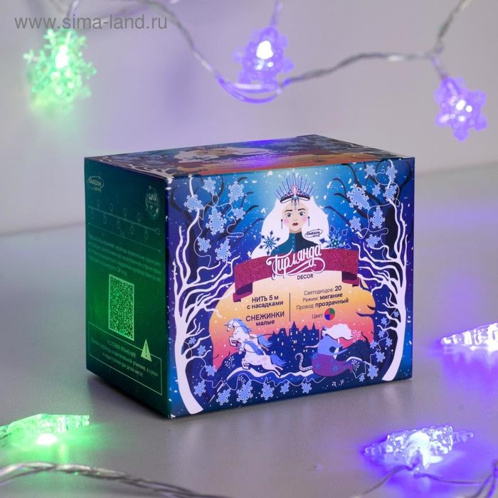 Гирлянда «Нить» 5 м с насадками «Снежинки малые», IP20, прозрачная нить, 20 LED, свечение мульти (RG/RB), мигание, 220 В