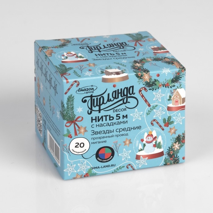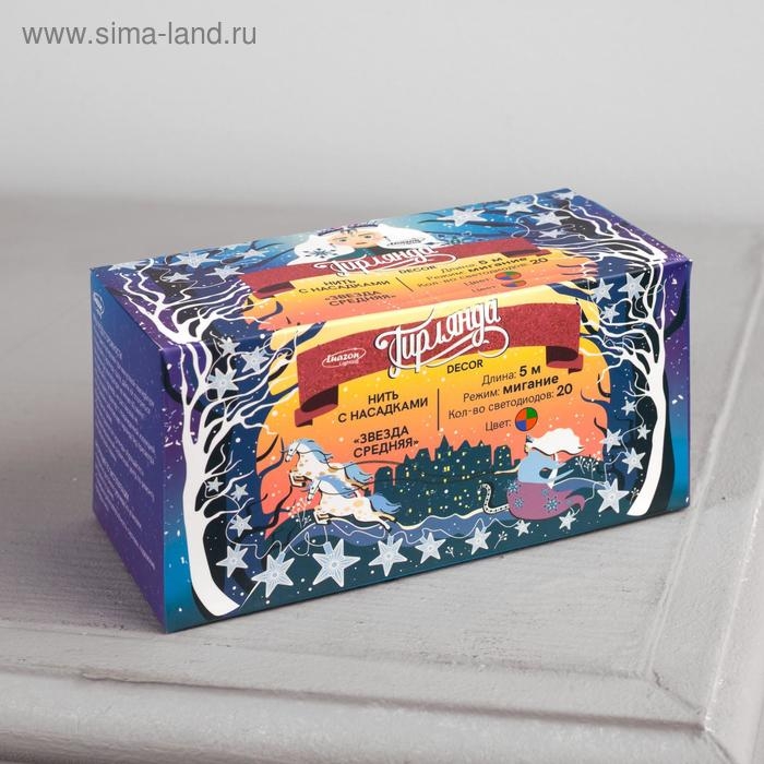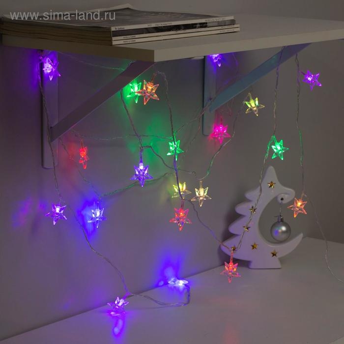 Гирлянда «Нить» 5 м с насадками «Звезда средняя», IP20, прозрачная нить, 20 LED, свечение мульти (RG/RB), мигание, 220 В