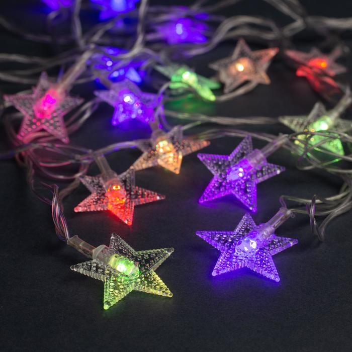 Гирлянда «Нить» 5 м с насадками «Звезда в крапинку», IP20, прозрачная нить, 20 LED, свечение мульти (RG/RB), мигание, 220 В