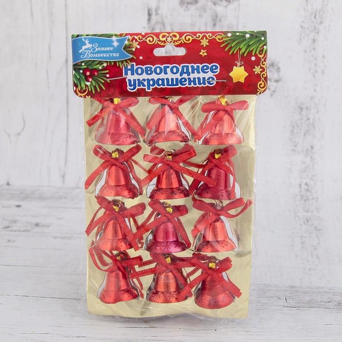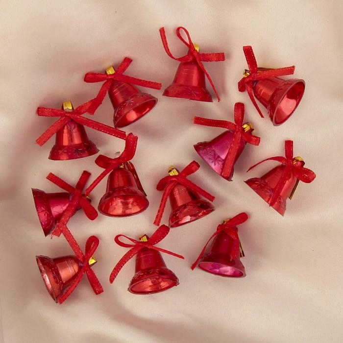 Украшение ёлочное "Колокольчики с бантиком" (набор 12 шт) 2 см, красный