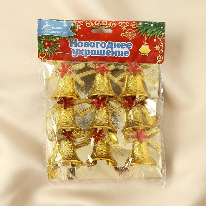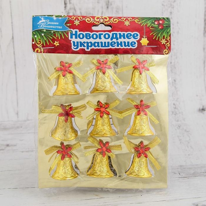 Украшение ёлочное "Колокольчики рельефные" (набор 9 шт) 2 см, микс, золото