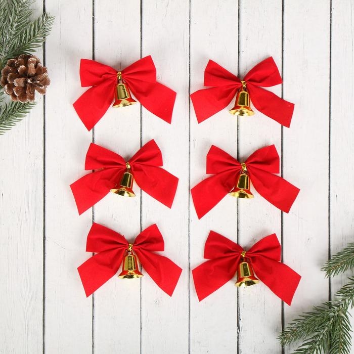Украшение ёлочное "Бантик с колокольчиком" (набор 6 шт) 10 см, красный