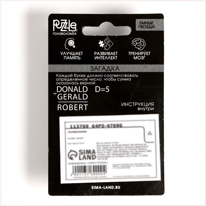 Головоломка Игры разума «Умные гвозди» №3,на блистере