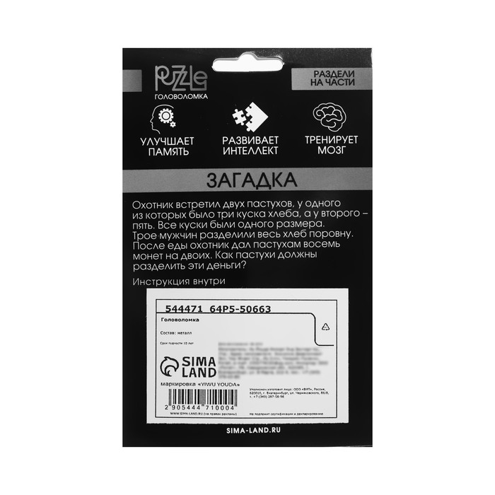 Головоломка Игры разума "Раздели на части" №12 - это уникальный товар, способствующий развитию эрудиции, воображения, логического мышления, смекалки и умения концентрировать внимание. Хотите продемонстрировать друзьям свои интеллектуальные способности? Головоломка Игры разума "Раздели на части" №12 поможет Вам в этом поможет.